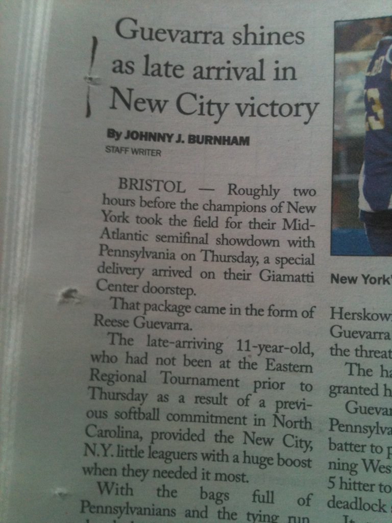 The late-arriving 11-year-old, who had not been at the Eastern Regional Tournament prior to Thursday as a result of a previous softball commitment in North Carolina, provided the New City, N.Y. little leaguers with a huge boost when they needed it most.