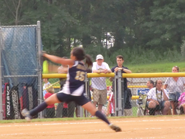 Pennsylvania loaded the bases in the first with two outs for Nicole Dunlop. The Greensburg, Pa. centerfielder poked a ball that seemed as if it was destined to find its way through the right side. Instead, it struck teammate Breck Ewer running from first. While the ball hit her in the base path, it appeared to have already gone past the New York second baseman, which would have negated any interference call.